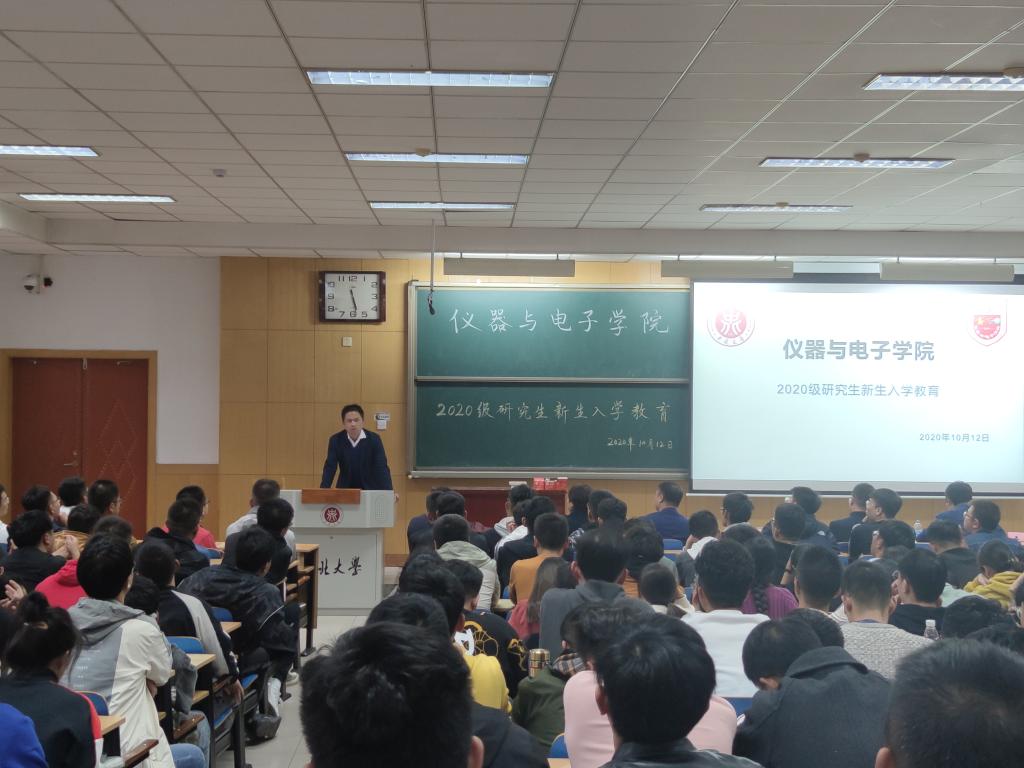 的校情校史、红色基因和太行精神,深情陈述了学院和学科的历史沿革、发展演变和仪电气质,大力倡导新青年创造“两个人生”、锻炼“三个能力”,引领青年研究生要始终饱含爱党爱国的深厚情怀,坚定秉承创新开放的精神气度,不断发扬勤勉实干的工作作风,勇于担当科技强国的时代重任。之后,其他院领导分别讲解了仪器科学与技术、电子科学与技术两个一级博士授权学科的特色建设、主要成果、发展前景及就业形势等情况,宣讲了研究生学位条例、硕士直博政策和要求、评优奖励制度和办法、违纪违规处分条例等内容,学生关心关注的内容进行讲解;强调了禁止学术道德败坏、学术行为不端的现象,要求研究生高度树立保密安全意识,警醒同学们坚守底线思维,坚决远离网络平台贷款,时刻警惕电信电话电脑等各类新型诈骗,积极做好疫情防护与防控工作及肺结核等传染病及流行病的筛查、治疗和预防,基本对研究生新生同学们在思想政治、学科专业、学术道德、安全与保密、奖励政策、推免政策、校规校纪及疫情防控、传染病预防等等方面进行了全方位、全覆盖教育和引导。