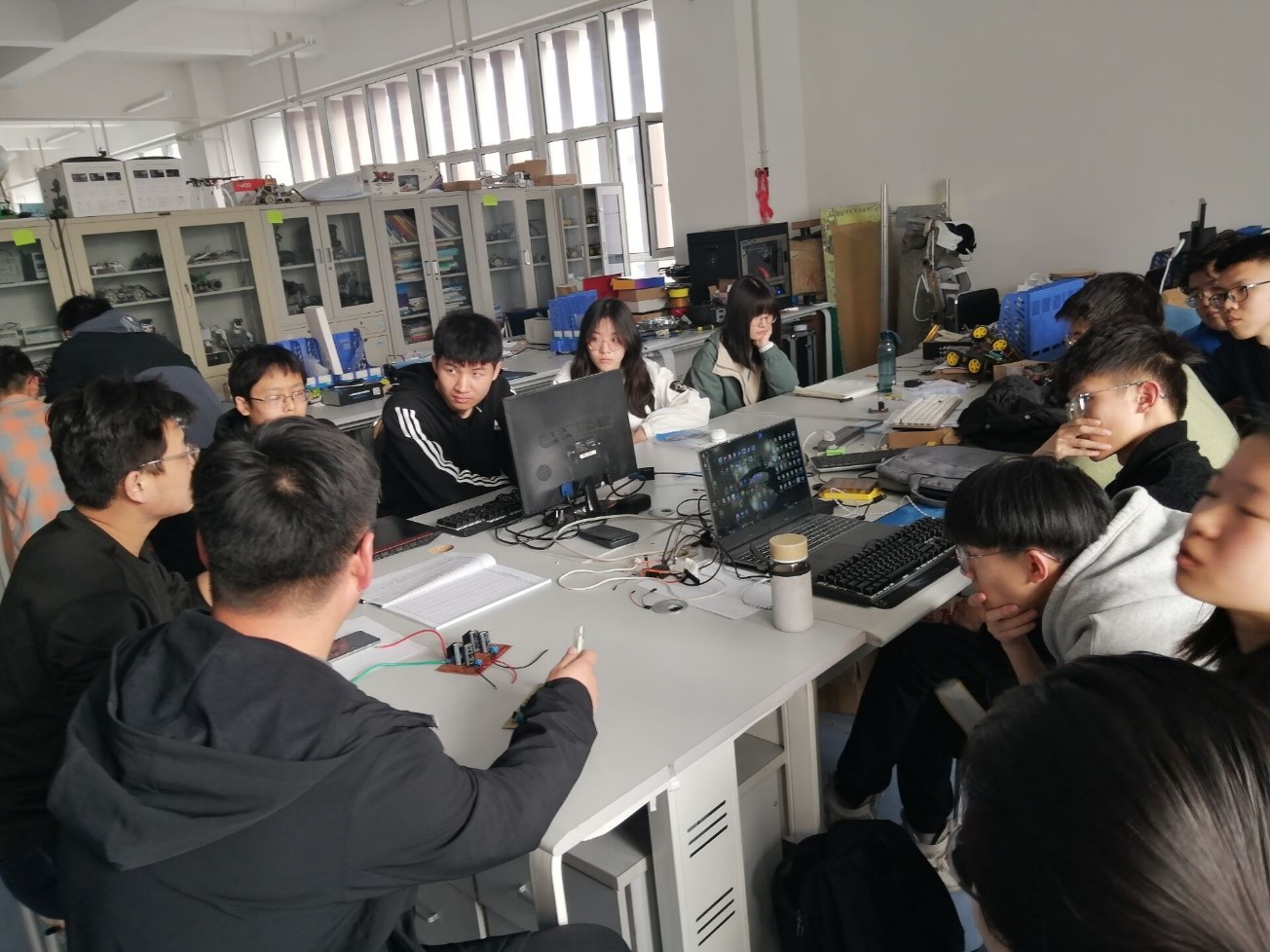 例会共开展三部分内容,首先由张凯邦学长为我们分享电赛参与经验,并鼓励大家积极参与、准备比赛,同学们对于比赛有了初步的了解,收获颇丰;接下来,由实验室主席刘建伟学长为我们安排实验室日常工作,本学期比赛规划及实验室项目分配问题,并对于实验室人员签到安排做出了讨论,同时组织同学进行假期经验分享,指出优点和不足之处,并为学习方向做出指导;例会第三项,组织同学进行实验室纳新工作,为实验室储备更多志同道合的伙伴。