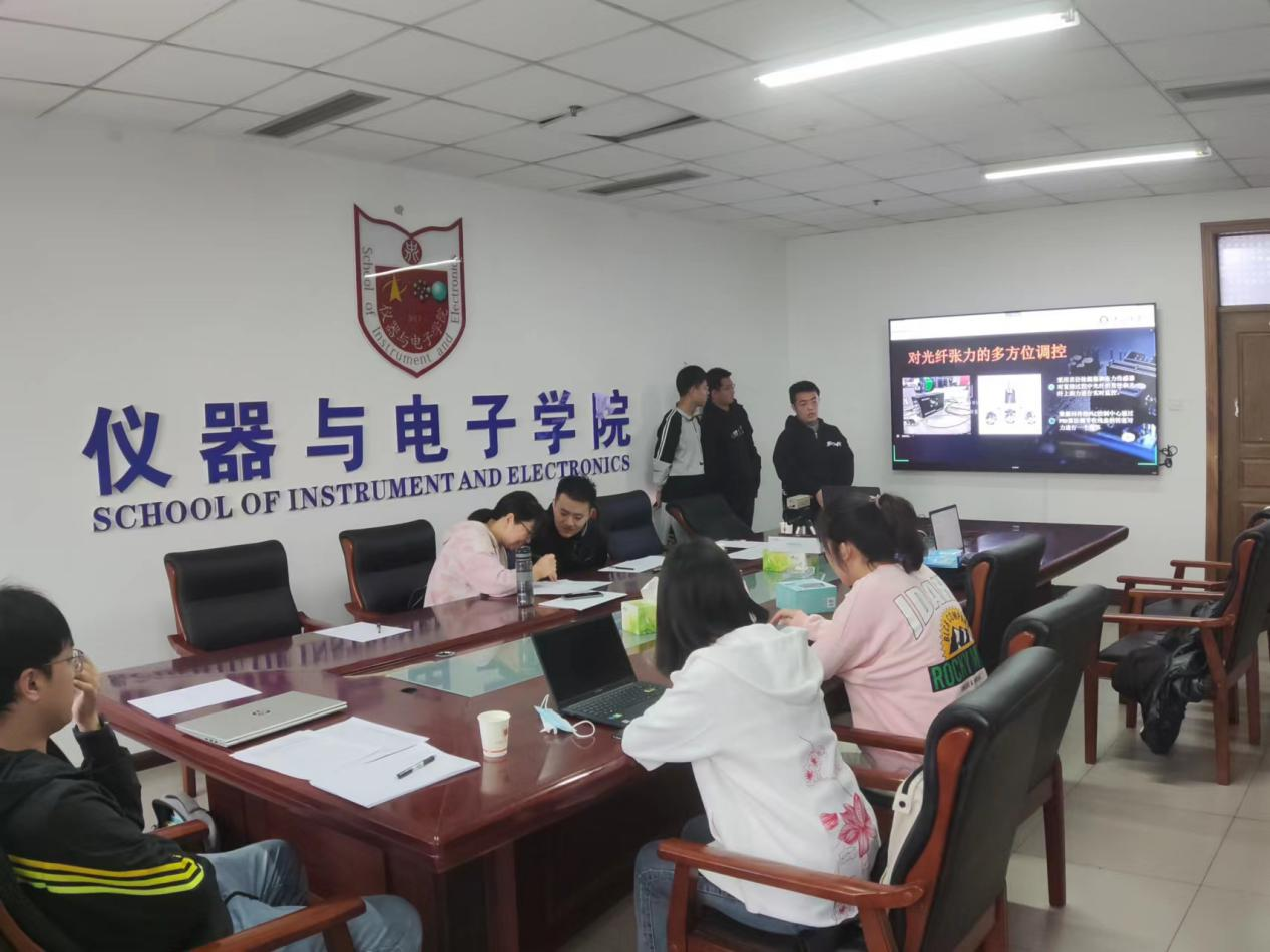 第八届“互联网+”大学生创新创业大赛院赛答辩正式开始。90余组答辩队伍分线上线下分别进行答辩,在准备区充分地准备后按照序号前往会议室或者线上会议依次进行答辩。
