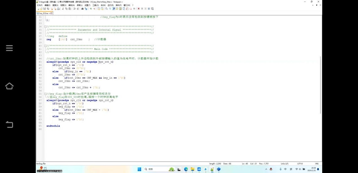 在本次培训中凌晓锐首先为同学们介绍了如何使用征途系列的开发板进行32位的开发。接着,介绍了三种常量类型:整形实数字符串、非阻塞赋值和阻塞赋值。然后,讲解了按键消抖的模拟过程,包括按键被按下时的计数器状态、按键未按下时的计数器状态以及消抖过程。并介绍了如何将这两个模块连接起来最后讲解了如何进行波形图绘制和功能模块设计。通过当堂讲解和当堂答疑,帮助了同学们快速掌握了有关内容,为日后的具体应用奠定了基础,同时更加明确同学们的学习方向。