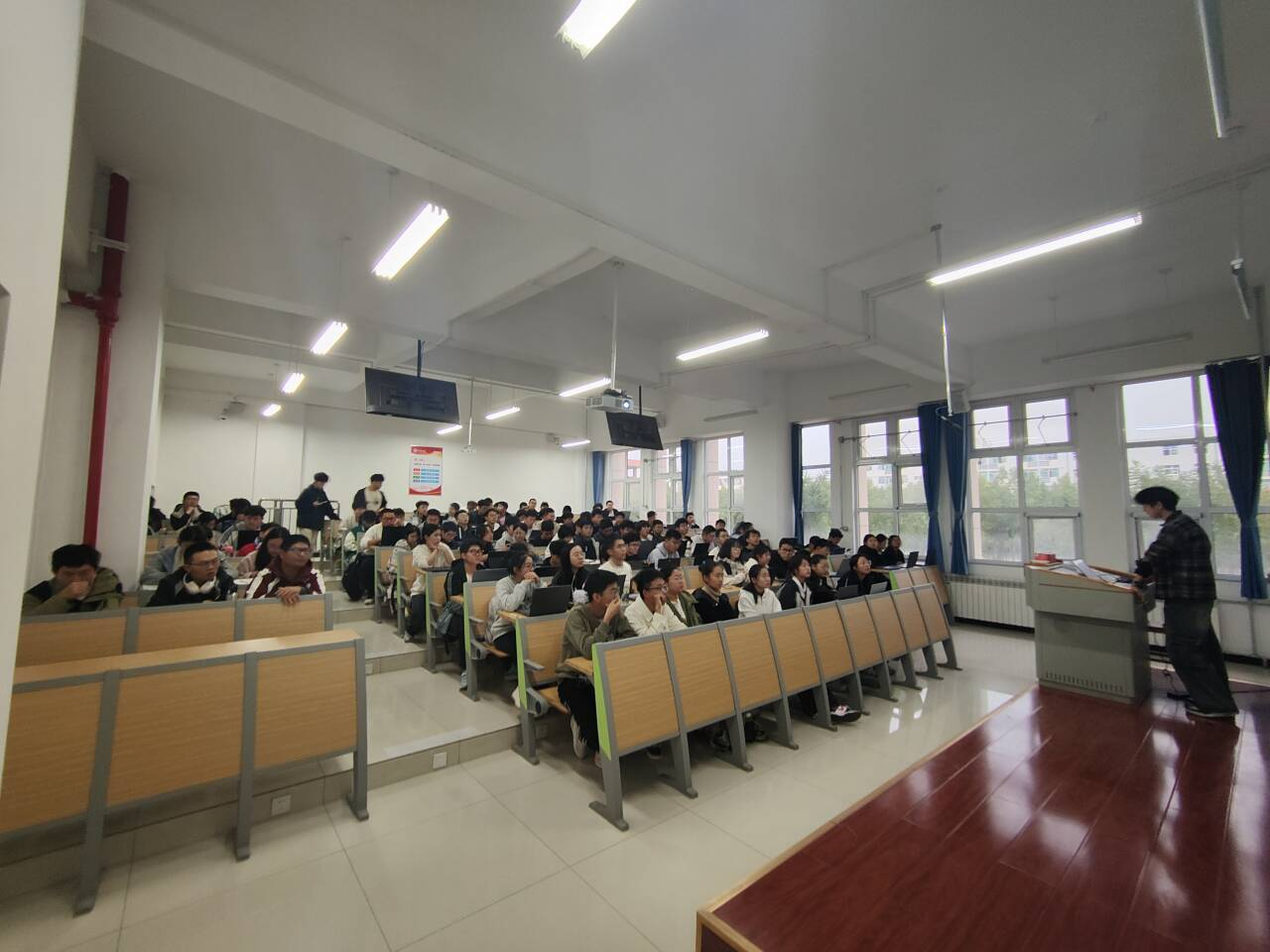 2024年10月19日第一二、三四大节课,在17101H、17102H、17103Z教室,来自机器人实验室的郑钧朔学长对24级1至9班进行了第1次普及培训。