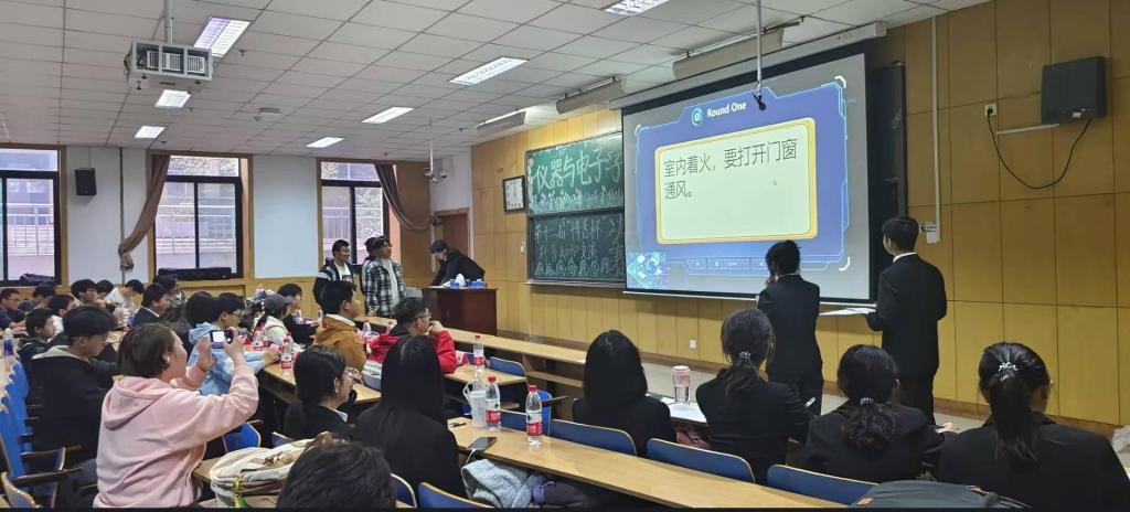 先是四支队伍分别上台自我介绍,之后设置了小试牛刀,火眼金睛,知识探险,先声夺人四轮闯关,比赛现场气氛活跃,选手的每一次抢答得分都紧扣着同学们的心弦,比赛间隙进行了微信抽奖游戏,并为同学发放精致的小奖品,同时穿插着表演节目,为比赛增添了别样的乐趣,给同学们带来了一场与众不同的比赛。