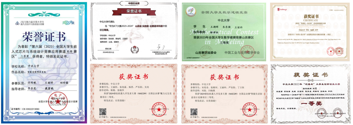 从日常培训中接触学习单片机,提高编程能力,从寻迹小车开始,完成一个个作品,我开始参与大大小小的竞赛,当然前进的路不是一帆风顺的,我屡战屡败,屡败屡战,诚然我付出的时间和精力不够多,获得了很多三等奖,华为云ict大赛山西省三等奖、全国大学生数学建模山西省三等奖、嵌入式大赛北部赛区三等奖。