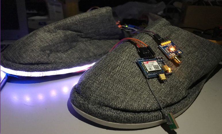 大一因为我们宿舍晚上会熄灯,每天晚上起来上厕所还得拿着手机照亮,当时我就想做一双智能鞋可以晚上穿上它就可以发光发亮,由此诞生了我本科第一个电子创造——多用智能鞋。通过压力H桥电路他可以感应是否有人穿上这双鞋,并且通过光敏电阻来判断是白天还是黑夜,这样只有当夜晚有人穿上这双鞋的时候他才会发亮,整个智能算法都是通过单片机编程实现的。在高中我会觉得这真是一件神奇的设计,但是加入了实验室有了一定的学习之后其实这是非常简单的。后来我们根据生活中的老龄化现象又在智能鞋上加入了GPSGSM模块可以实时定位老年人的位置,这也是我大学第一次参加比赛的作品。