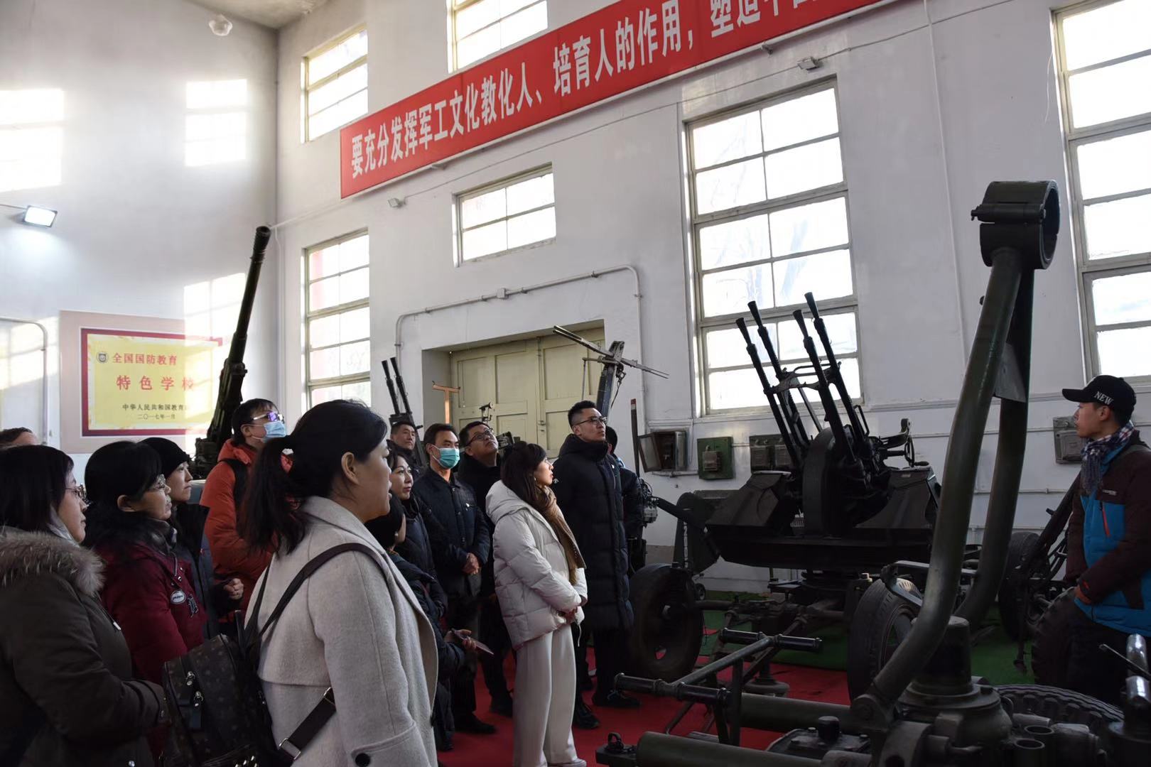 山西林业职业技术学院老师们首先来到学校军工文化园——火炮陈列室进行参观。在讲解员葛双喜老师的带领下,大家有序步入陈列室,认真观看了陈列的火炮等兵器,葛老师声情并茂、激情澎湃地对各种武器装备进行了讲解,并带领大家重温并朗诵了毛泽东主席的诗词《西江月·井冈山》。教师党员们边观看,边讨论,在回望中国共产党领导革命战争的烽火硝烟中,感受英雄前辈们百折不挠、不畏牺牲的优良作风以及为了研发先进的武器装备艰苦奋斗、勇攀高峰的崇高精神。