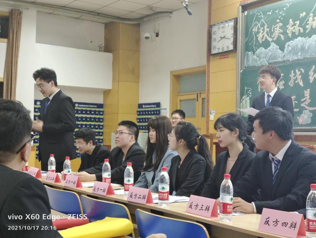 辩论协会于九号楼组织开展“秋实杯”辩论赛开幕式活动,此次活动邀请了团委学生会主席张智杰,李旭,丁玲,李恒君,马天润,赵亚轩等及大一大二代表作为嘉宾参加本次活动。
