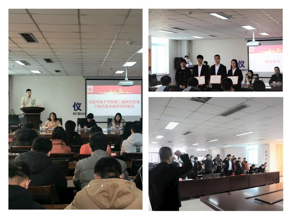 在第三届研究生会主席魏雯强带领下,新的研究生会全体成员进行了包含激情的集体宣誓,展现了他们对未来工作的信心与决心,也展示了第三届研究生会全体成员的工作热情和活力。