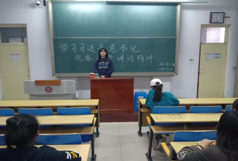 电子科学与技术党支部第三党小组全体党员在11211Z教室学习习近平总书记在西藏考察时的重要讲话精神,电子科学与技术党支部党委副书记郎琪主持学习会。