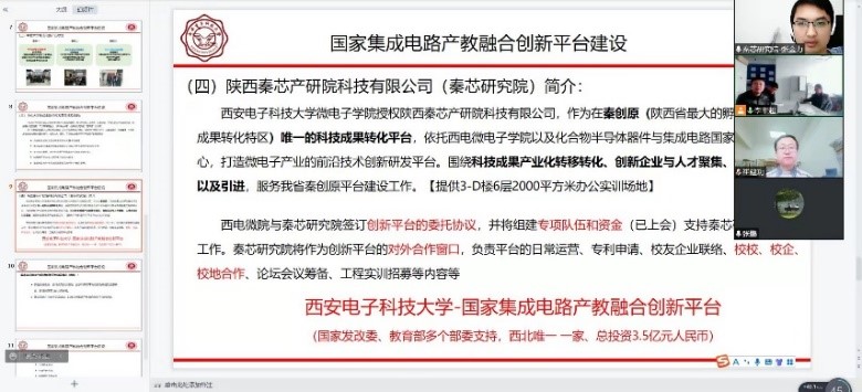 (半导体学院)副院长梁庭、崔建功、余建刚及李丰超等教师通过网络会议形式,与西安电子科技大学微电子学院及秦芯研究院张鹏董事长、张金力总经理等相关教师就91网