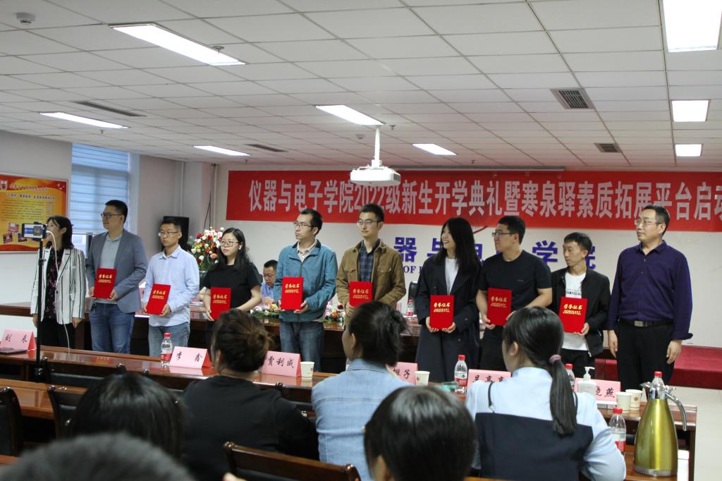 书记郝晓剑和院长刘文怡共同为寒泉驿素质拓展平台揭牌,平台的建设进一步丰富了学院的育人手段。李杰副院长宣读了《关于聘任2022级新生班主任的决定》,全体与会领导为新生班主任颁发了聘书。杰出校友代表王彦、寒泉驿教师代表李秀源、在校生代表博士研究生贾涛、新生代表硕士研究生侯礼杰等纷纷发言。在开场新生视频中的家长寄语,一句句“儿子,加油”、“女儿,爸爸妈妈爱你”感动了全体在场人员的内心。