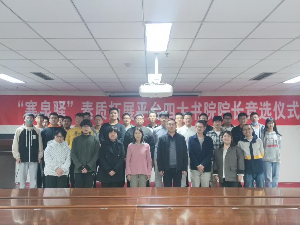 党委书记郝晓剑、院长刘文怡、副书记杜瑞平、寒泉驿负责老师李秀源以及多位班主任、辅导员老师和学生代表线下参加了竞选仪式。郝书记宣布“寒泉驿”素质拓展平台四大书院院长竞选仪式正式开始。