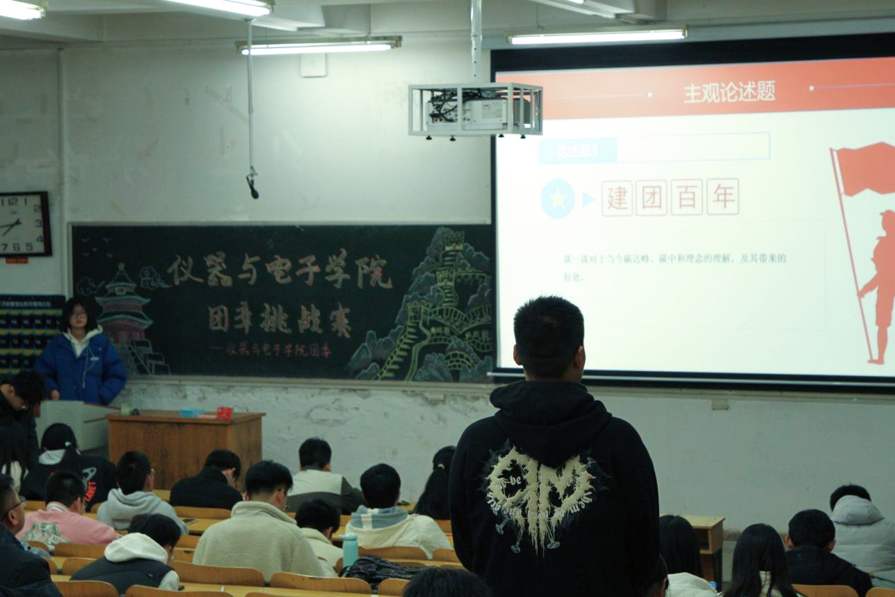 本次团章挑战赛共分为三部分,卷面答题,现场答题以及主观论述题。活动中,各团支部团员积极参与,敢于表现自我,彰显自己团支部的特色,活动十分精彩激烈。活动最后,全体团员合唱《光荣啊!中国共青团》,活动圆满落幕。