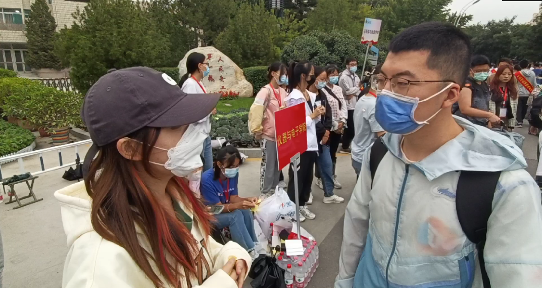 团委学生会成员充当志愿者,设置一道门外、一道门内、足球场边、四道门外四个点位,从新生报道至新生进入宿舍,全流程帮助新生入校。