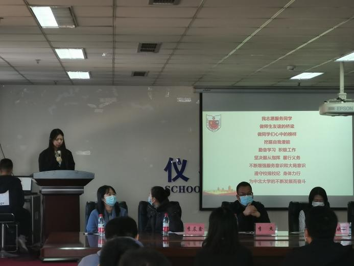 在第四届研究生会主席李皓璇带领下,第四届研究生会全体成员进行激昂且真诚的集体宣誓,展现了他们对未来工作的信心与决心,也展示了新一届研究生会全体成员的工作热情和活力。
