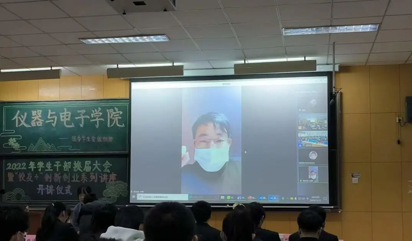 山西意启创电子可以有限公司创始人兼总经理李辉校友,就创业中遇到的问题分享了自己的心得,并指出成功的三个方面:热爱、专注、诚信,也指出在疫情期间,创业更考验的是个人的知识导向,要一直保持热爱和专注,成功不能复刻,但努力不会辜负。