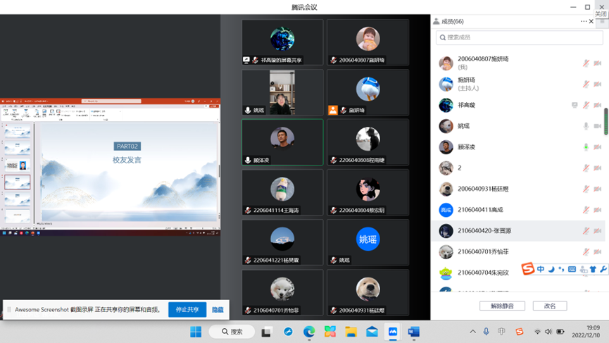 现就职于北京美团总部的张勇校友在校期间曾任学生会主席,他主要分享了在学生会期间的经历、就业与考研的抉择、实习工作经历和对在校生的建议。他提出在学生会的锻炼可以让我们更加热情、坚韧,也可以在很多人面前开放表达。