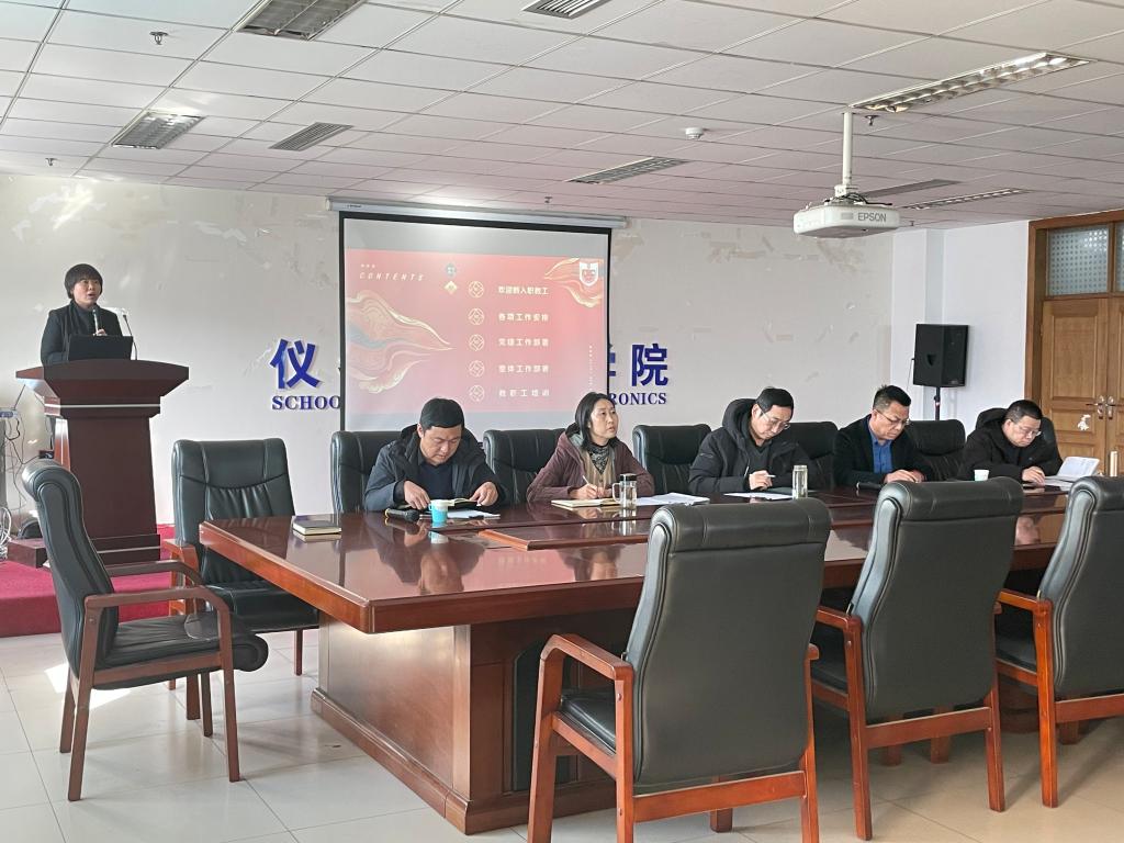 在开学的第一天召开全员教工大会。仪电人齐聚在学院1115会议室,盘点2022年的收获,谋篇布局2023年的新征程。会议由学院副书记杜瑞平主持。