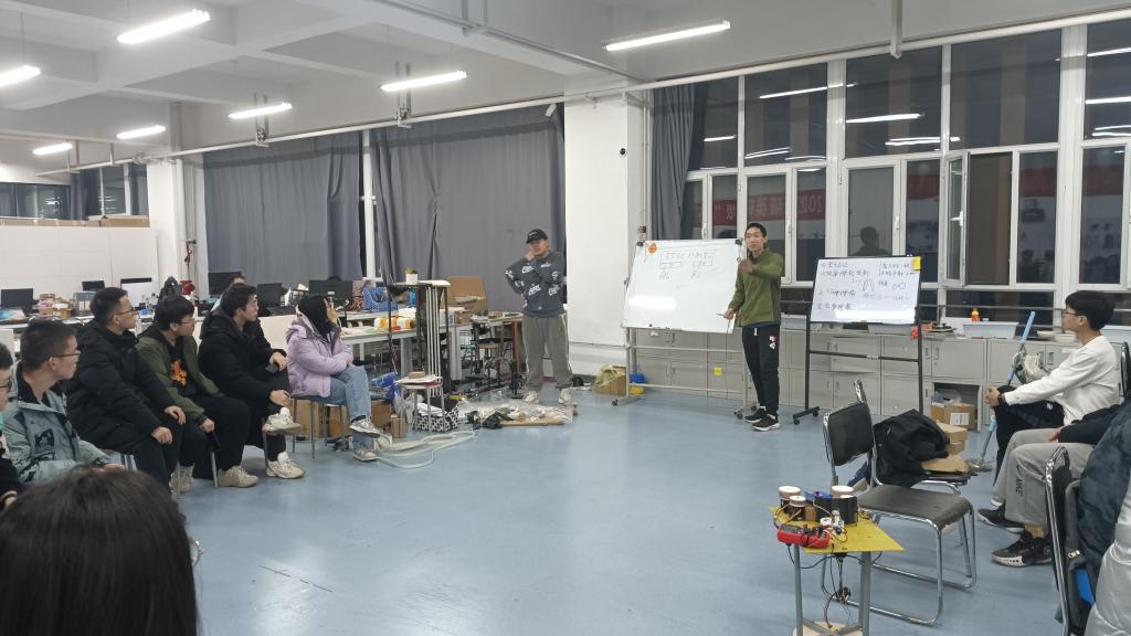 在新学期的第一个周末,机器人创新实验室主席邱俊浩召开了对21级实验室成员的例会。首先,邱俊浩对21级实验室成员的寒假学习内容进行针对性总结并提出本学期的基础学习目标及参赛要求。其次,邱俊浩对22级实验室成员的培训事项进行重新部署,并建议每位21级成员对2到3位22级成员负责其培训与参赛。最后,邱俊浩通知21级成员机器人创新实验室与仪器与测量实验室共同组建“EPOCH机器人”战排的事宜。机器人实验室主席邱俊浩首先介绍了机器人创新实验室和仪器与测量实验室重新布置场地,并向同学们强调了如此布置对两个实验室成员互相交流,互帮互助的重要性;之后,对战排性质及重要性进行明确和强调,激励成员进行组队参赛,钻研技术,为出校打比赛打下坚实的基础。