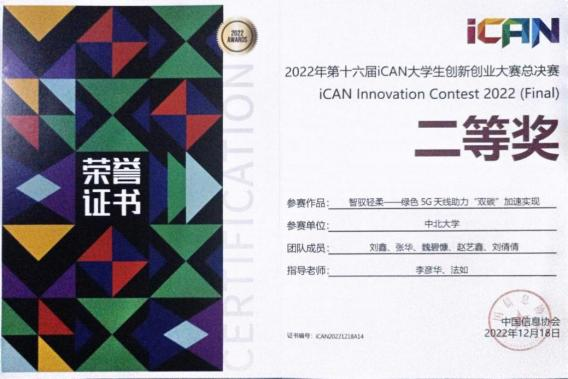 在学科竞赛中,作为负责人主持大学生创新创业项目国家级项目及获得ICAN大学生创新创业大赛国家级二等奖、国际ICAN大学生创新创业大赛省级一等奖、“大唐杯”全国大学生移动通信5G技术大赛省级二等奖、中国大学生计算机设计大赛省级二等奖(两项)、“西门子杯“中国智能挑战赛省级三等奖等荣誉,作为主要参与者,获得中国大学生机械工程创新创意大赛“巨化-卓然-笃舜杯”过程装备实践与创新赛国家级二等奖、中国大学生计算机设计大赛省级一等奖、“建行杯”第九届山西省“互联网+”大学生创新创业大赛省级银奖(两项)。除此之外,获各类竞赛校级奖项二十余项并以第二作者发表sci论文一篇。