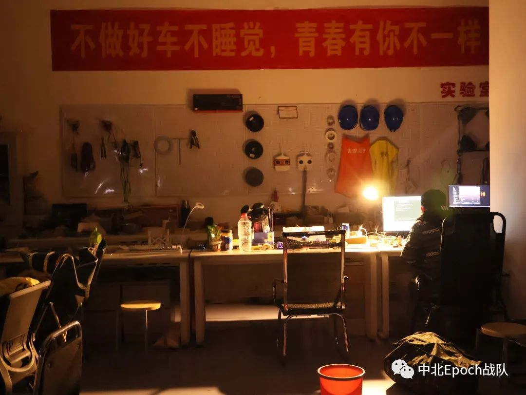 Epoch战队在探索中前行,脚步缓慢但坚定。队员们全力以赴,夜以继日,但整体进度依然比较落后。随着比赛中期检查临近,进度越来越紧张。队员们都绷紧了弦,不敢有一丝差错。五一假期,队员们五天没有离开实验室一步,加工、装配、调试......空闲的3D打印机热床上时刻放着从食堂打包的饭菜,累了,就伴着机床的声音入睡,醒来就立即投入工作,只为在中期检查交上一份令自己满意的答卷。