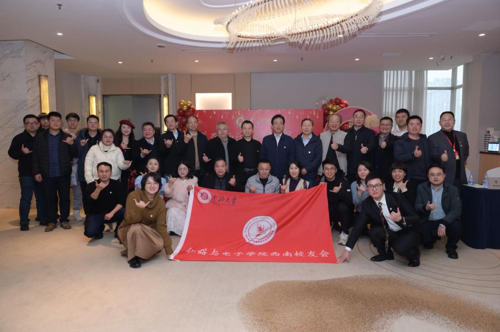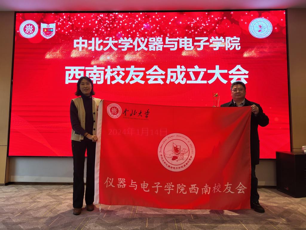 学院党委书记郝晓剑向学院西南校友会授旗。学院西南校友会会长88级吴晓丹校友表态发言:第一,在军工等行业领域,拓展仪电专业品牌;第二,向学校仪电名家学习;第三,夯实仪电专业的学生在西南地区的就业。希望能与西南校友一起讲好仪电故事,贡献仪电力量。