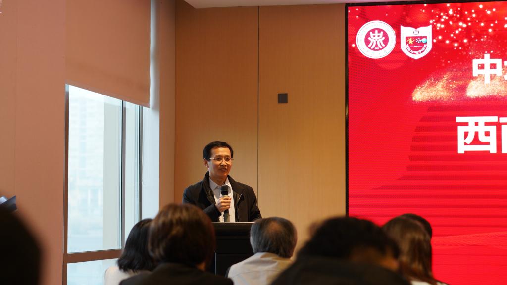 西南校友会的成立表示热烈祝贺,对为成立工作付出辛勤劳动的校友表示衷心的感谢,也对前来参会的各位校友表示诚挚的谢意。雷锋斌副书记在致辞中提出五点希望:第一,希望校友会成为学校人才培养反馈机制的重要一环,能够将社会所需及时反馈给学校;第二,希望将校友会办成科学研究与成果转化的前沿阵地,为属地的经济发展、人民的幸福谋利益;第三,希望把校友会建成招生就业的桥头堡,在校友会组织下对学校加大宣传,才能将更加优质的学生招进学校,培养成才,产出一流的学生,实现“留得住、进得来、用得上、干得好”的目标;第四,希望把校友会建成属地校友温馨的家园和安全的港湾,担负起家庭生活更加和谐、事业更加顺利,未来更加辉煌的校友会职责;第五,希望把校友会变成校友之间创新创业的孵化器,让校友企业更加辉煌。