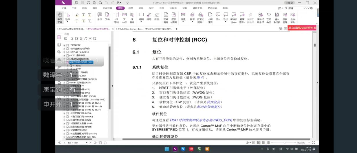 本次培训由机器人创新实验室副主席李昊麟主持,23级的同学们参加了本次科普培训。在此次培训中,李昊麟围绕着按键和外部中断等相关知识进行了详细耐心的讲解,本节课讲解内容有:按键和外部中断,代码分析,如何新建工程,时钟以及时钟源,外部中断/事件控制器(EXTI),嵌套向量中断控制器(NVIC)的特性,外部中断的优先级、优先级类型,唤醒事件管理以及发生方式,复位和时钟控制等。
