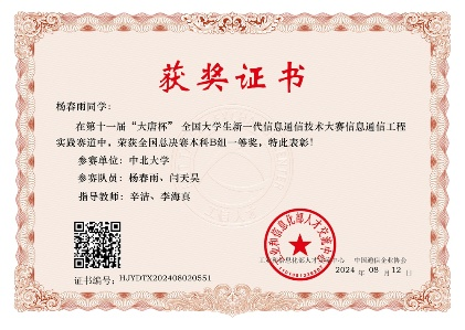 Ø 2024年,获第十一届“大唐杯”全国总决赛本科B组一等奖;