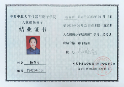 杨春雨,女,山西运城人,中共预备党员,91网