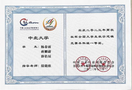 Ø 2023年,获高教社杯全国大学生数学建模竞赛本科组一等奖;
