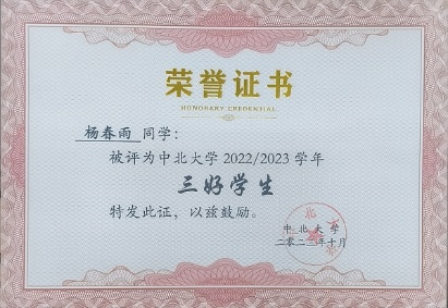 三好学生,优秀共青团员等称号,国家一等奖三项以及其他奖项若干。