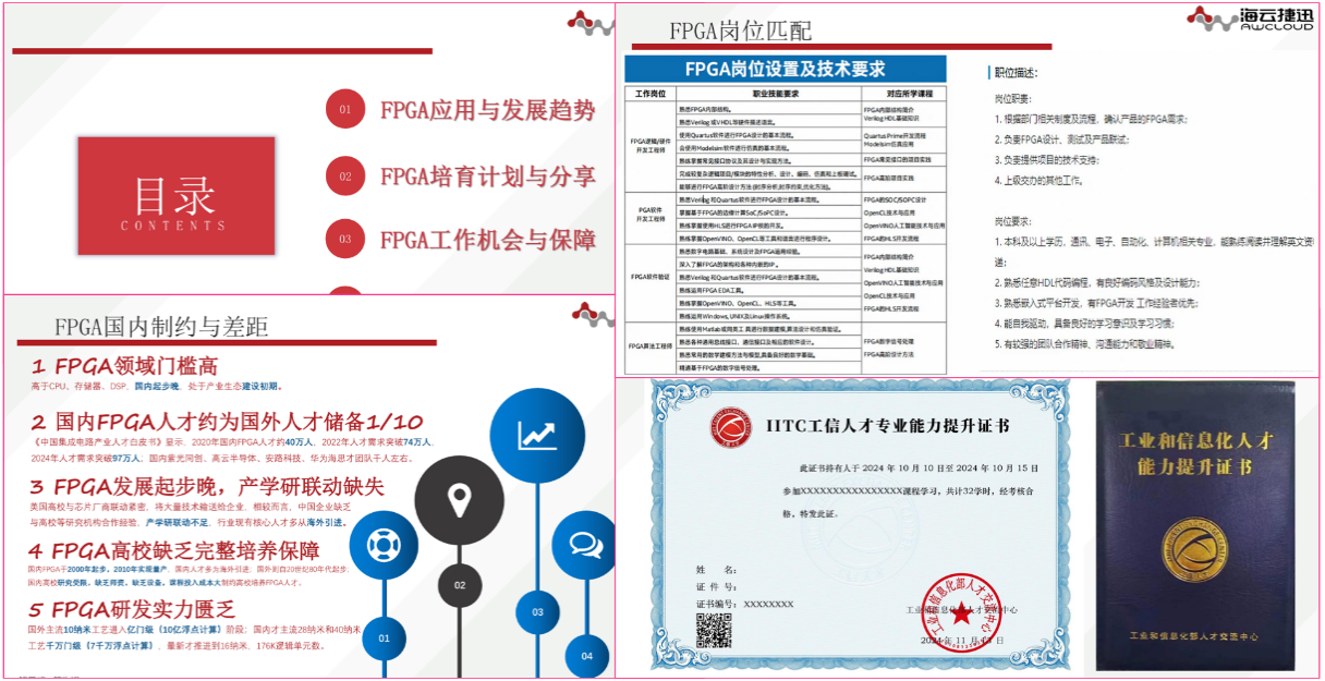 4月12日-4月13日,重庆海云捷讯科技有限公司李顺森工程师通过线上做了关于《2025年FPGA产业人才建设计划》的报告,系统介绍了当前市场关于FPGA人才需求情况,并从FPGA的应用发展趋势以及选择FPGA开发可能遇到的问题等方面与同学们做了深入交流。宋齐伟工程师为同学们带来了《Verilog基础》、《基于FPGA的SPI FLASH控制》等内容的讲授,丰富了课程内容,为后续开展的实验实践提供了基础。