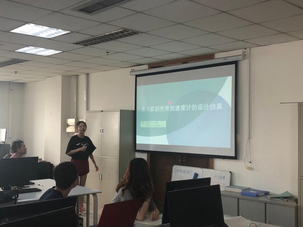 的“2.5+1.5”本科生培养方案,6月26日星期三下午三点,微电子科学与工程专业16级学生在主楼1200实验室进行了正向实训MEMS设计的答辩,为为期两个月的“微电子实践训练综合正向设计”专业特色教学画上了圆满的句号。本次实践模块围绕MEMS设计展开,指导老师有黄堃老师,崔丹凤老师和白国花老师。参加答辩的共有15名同学,涉及六个题目分别为:光学谐振器,光学MEMS加速度传感器(高频段、低频段),梁岛结构加速度传感器,光学折射率传感器和光学温度传感器。