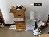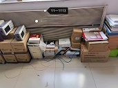 隐患1:电源控制箱附近有遮挡物。 隐患2:实验室内纸箱杂物摆放混乱。 |