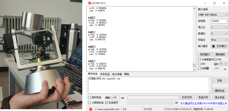 614日,同学们在1108实验室,利用串口调试助手,读取控制板和惯组版的数据,分析传回的数据是否正确,并进一步排错和调试。