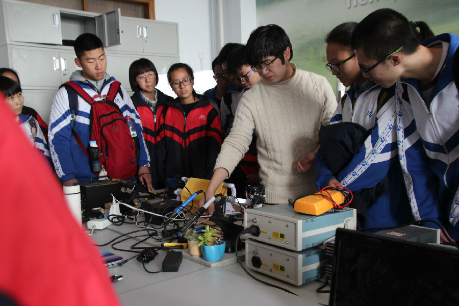 他们分为若干组,轮流参观各个实验室,每个实验室也安排人员,负责讲解每个实验室的特色,来参观的同学们,对各个展示的事物充满了好奇心,而讲解的人员也充满了耐心为他们讲解,参观期间他们表示出了对这些电子产品的极大热爱和向往。